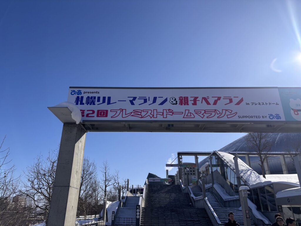 札幌ドーム内に設置された1kmのコースを周回します。1km毎にチームのメンバーと交代可能。ハーフの部とフルマラソンの部があり、今回私が参加したのはフルマラソン(42キロ走)の部です。